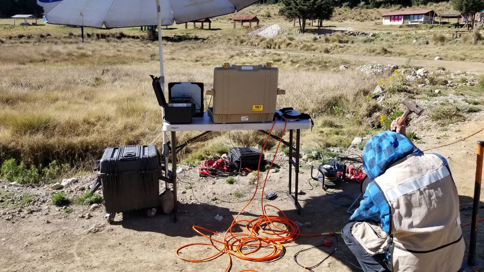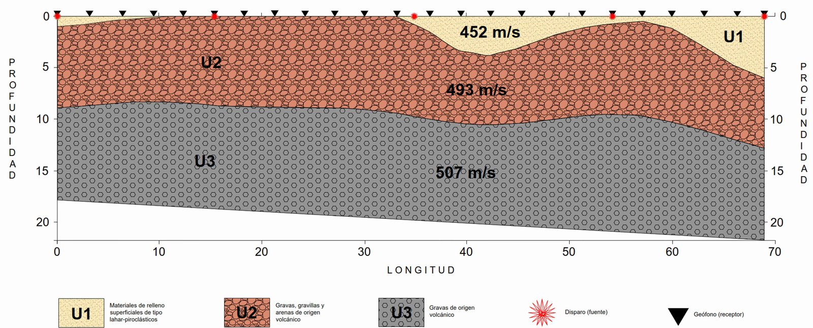 Los métodos sísmicos se enfocan en medir la velocidad de propagación de las ondas, que viajan a través del suelo, generadas por distintas fuentes. La técnica de refracción consiste en la generación en un frente de ondas en superficie a través de una fuente (marro o explosivos), el cual se propaga a través del medio, parte de la energía se refracta y es medida nuevamente en superficie por una serie de geófonos dispuestos de manera lineal y equidistante. La información leida por cada uno de estos sensores genera un gráfico conocido como sismograma en el cual es posible identificar los primeros arribos de la onda longitudinal (P). Con lo anterior es posible generar modelos geológicos con base en las velocidades de viaje de la onda.